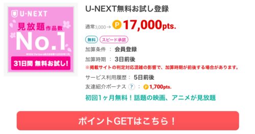 U-NEXT無料お試し登録で1700円相当のポイントがもらえる どうも「がんばらない節約ブログ」です 今回はU-NEXT無料お試し登録で1700円相当のポイントがもらえるECナビの案件を紹介します 31日間無料でお試しできてポイントまでもらえるので、まだやったことが…