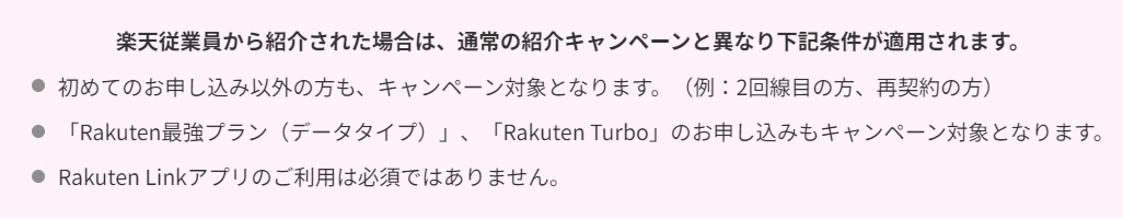 楽天従業員(今回の場合は三木谷社長)から紹介された場合、2回線目、再契約もキャンペーンの対象になるとの記載があります